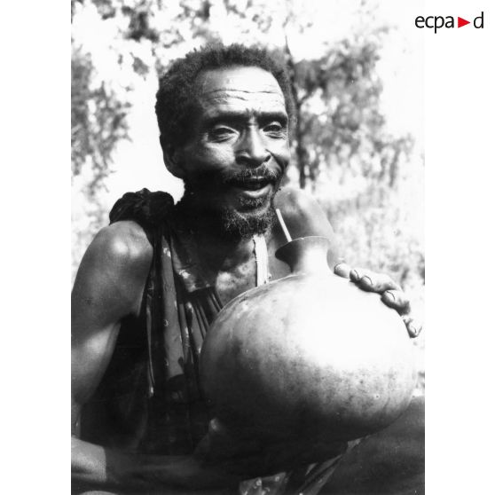 République Rwandaise, 1970. Homme buvant de la bière locale.