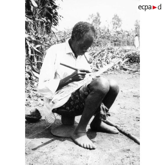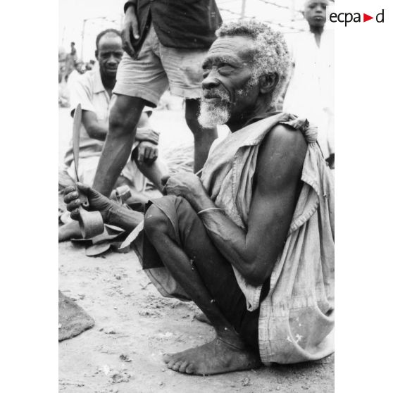 République Rwandaise, 1970. Vieux forgeron au marché de Gitarama.