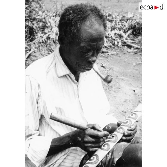 République Rwandaise, 1970. Artisan sculpteur.