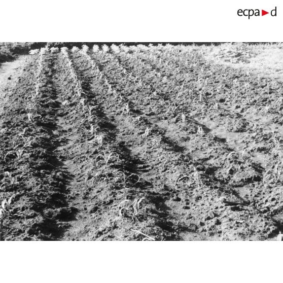 République Rwandaise, 1970. Culture de patates douces à flanc de coteau.