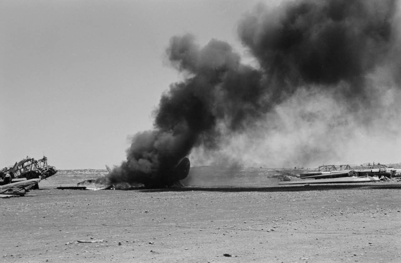 Résultats d'une attaque aérienne britannique sur un terrain d'aviation.