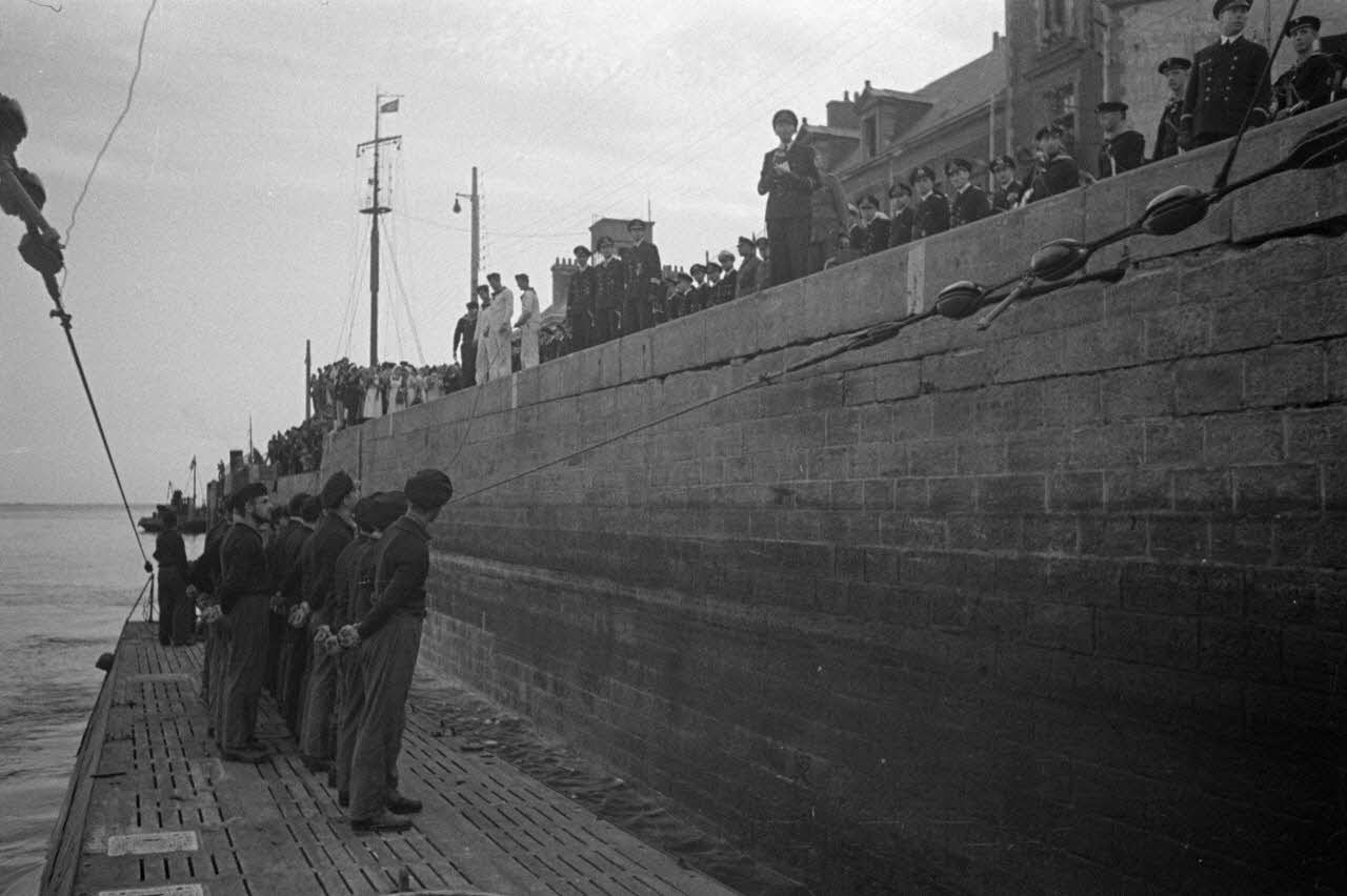 Retour à Saint-Nazaire du sous-marin U-553 commandé par le capitaine de corvette Karl Thurmann.