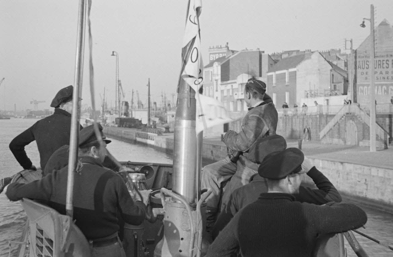 Au port de Saint-Nazaire, appareillage d'un sous-marin allemand de la 7.Unterseebootflottille et retour du sous-marin U-553 commandé par le Kapitänleutnant Karl Thurmann.