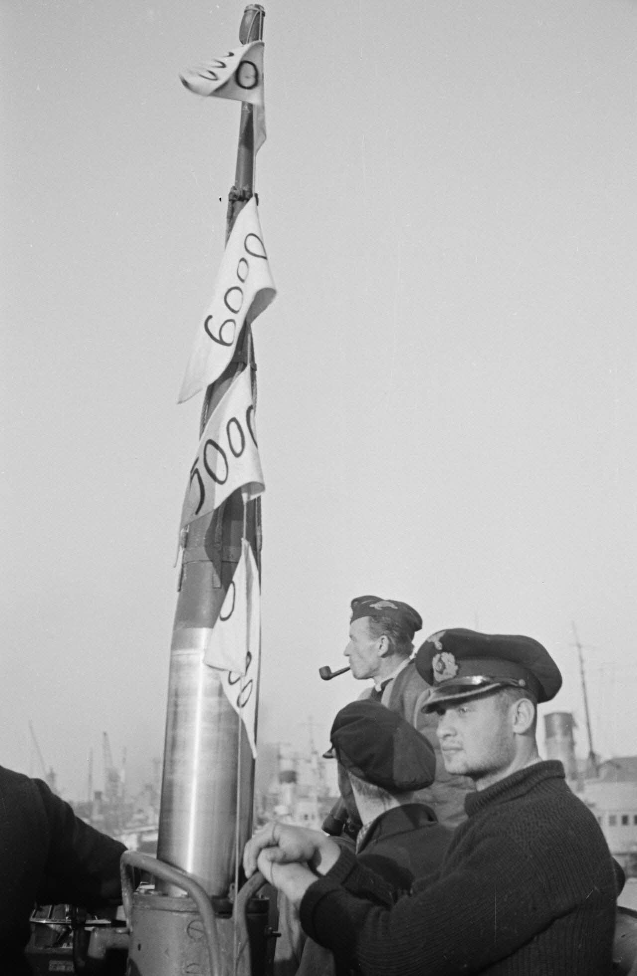 Retour au port du sous-marin du Kapitänleutnant Thurmann (U-553) et portraits du Kapitänleutnant Erich Topp (U-552).