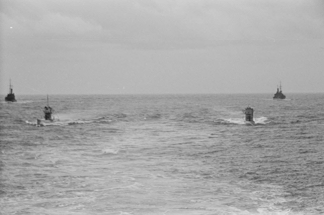 Retour de deux sous-marins, dont le U-83, photographiés depuis un briseur de blocus (Sperrbrecher).