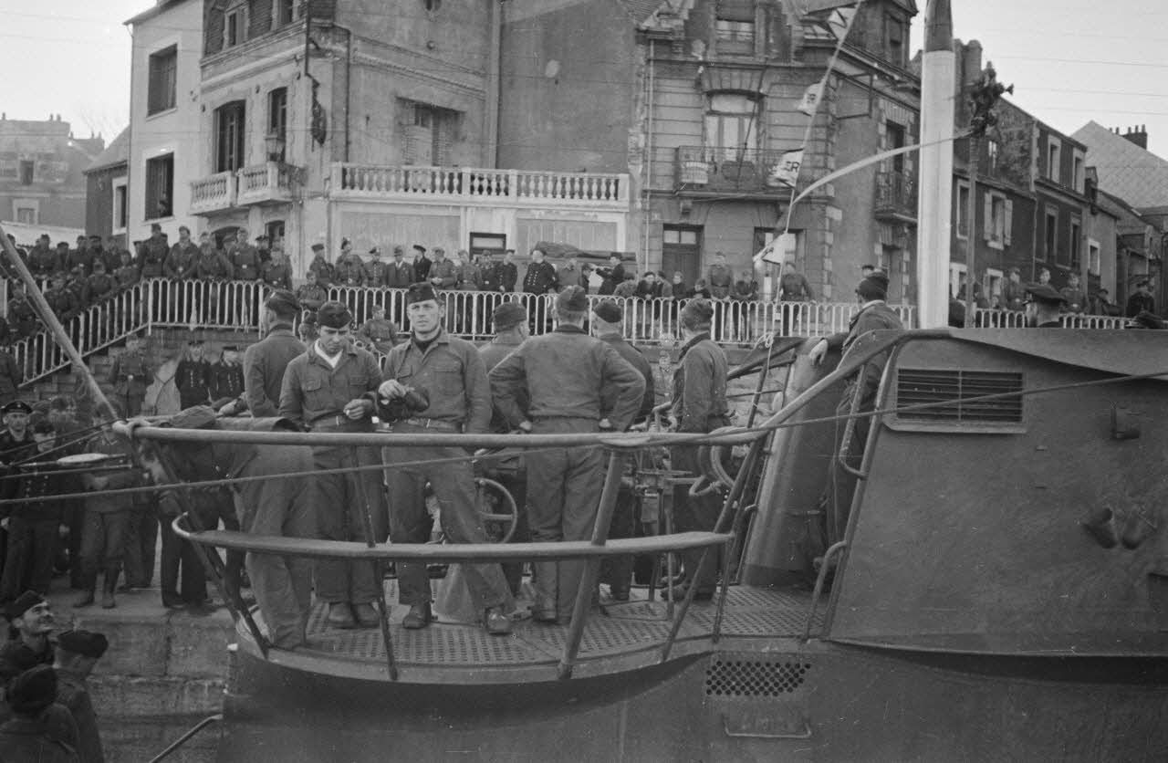 A bord du sous-marin U-46 du Kapitänleutnant Engelbert Endrass lors du retour de croisière à Saint-Nazaire.