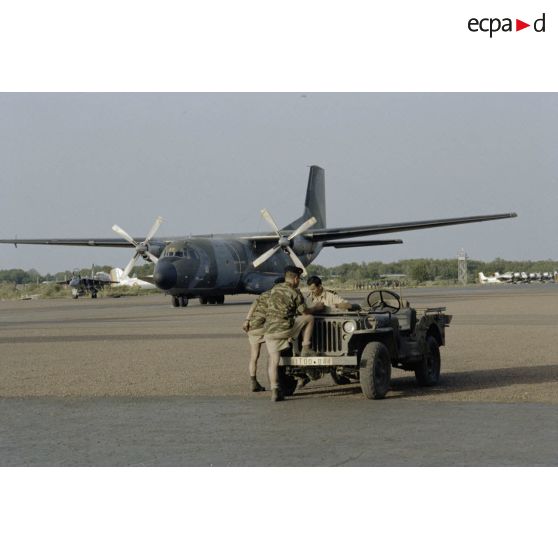 Avion Transall sur le parking de l'aéroport de N'Djamena.