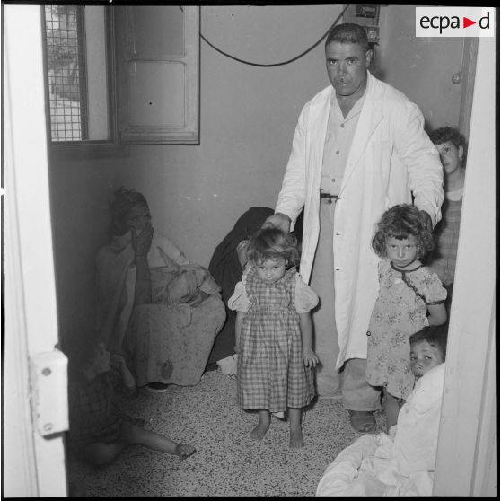 Un médecin militaire examinant un enfant algérien à Aïn Abid.