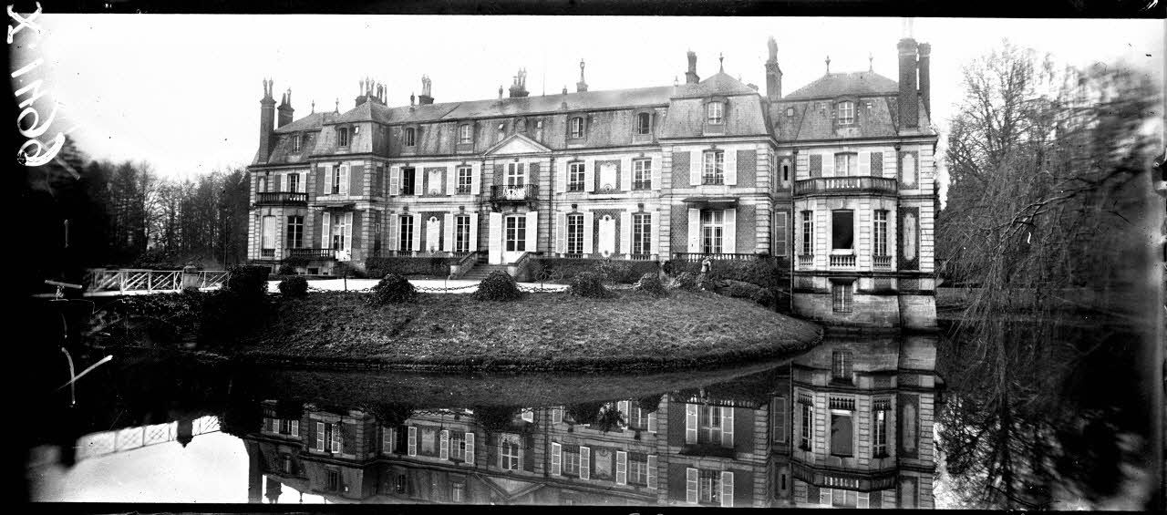 Verberie (Oise). Le parc et la façade nord du château d'Haramont.
