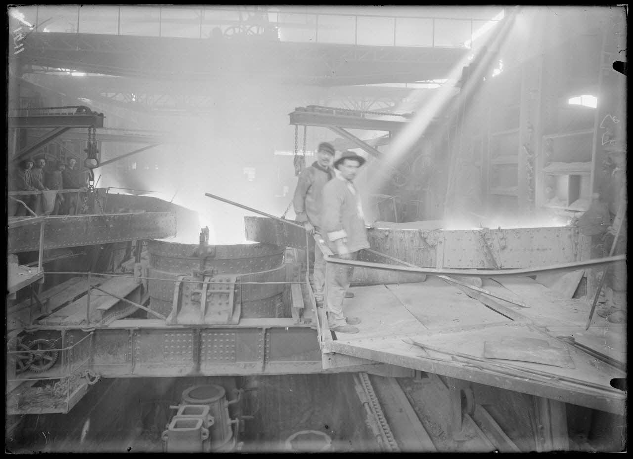 - Aux acieries de Saint-Chamond (Z 1546 à Z 1558) des coulées d'acier sont effectuées par les équipes de l'usine ; l'opérateur précise sur sa fiche qu'il a développé ces clichés pour se "rendre compte des résultats des coulées" (il y avait peut-être un risque de surexposition).
