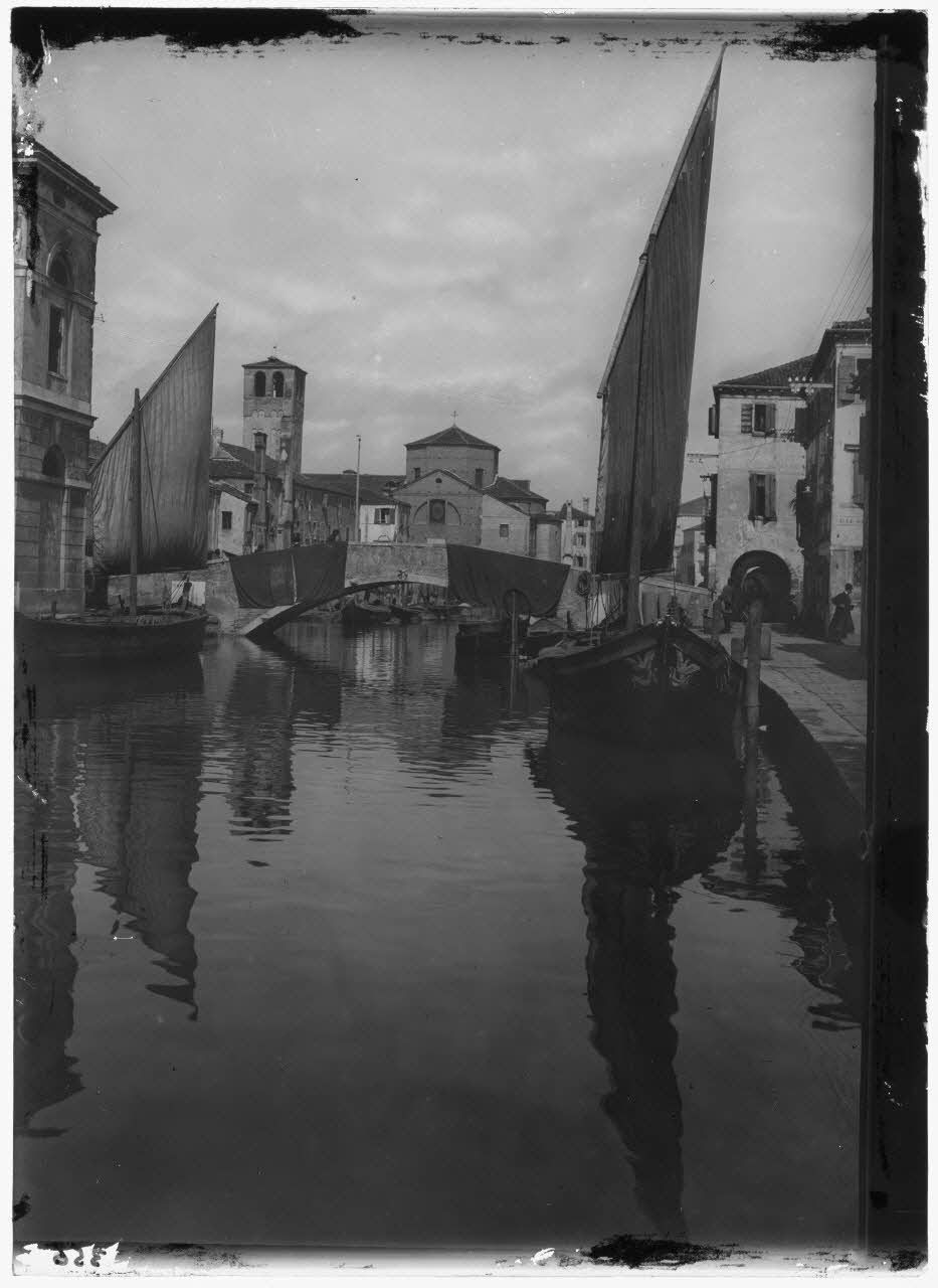 [Rivière coulant au milieu d'une petite ville, pont reliant les deux rives.]