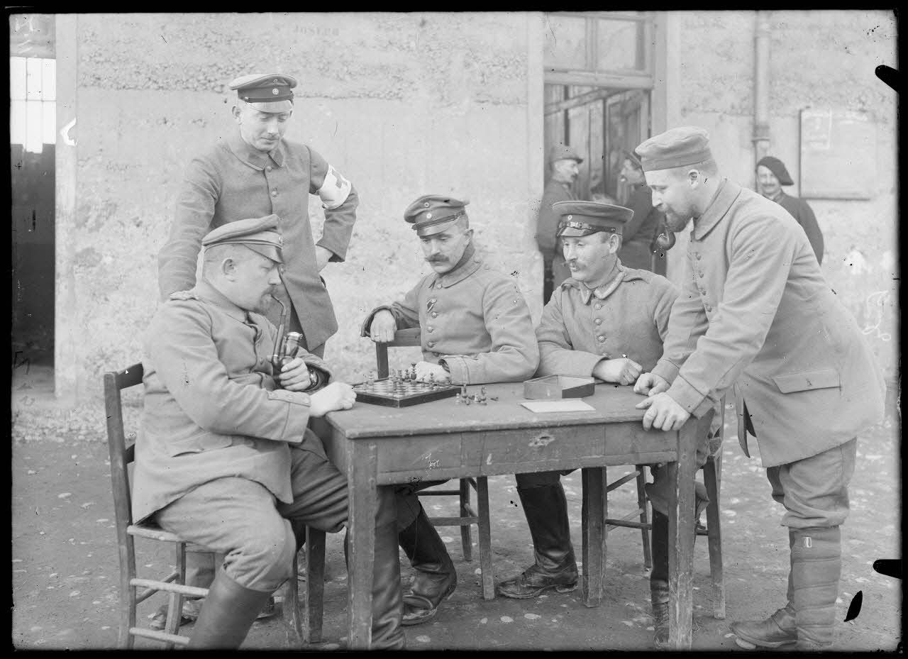 Romans (Drôme). Dépôt de prisonniers. Partie d’échecs. [légende d’origine]