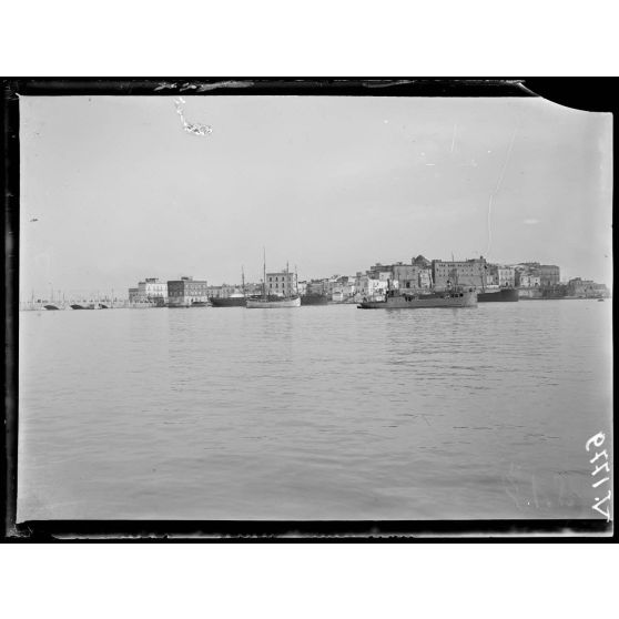 Des troupes françaises sont débarquées au port de Tarente, en Italie du Sud. Dans la ville, les soldats peuvent découvrir le palais épiscopal, les quais, la préfecture et le vieux port.