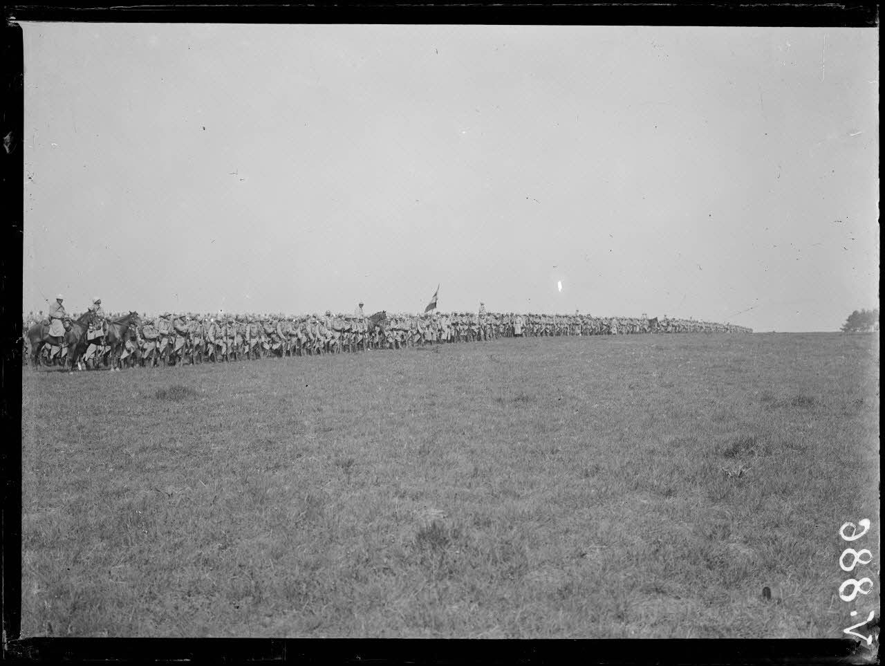 Rosnay, Marne, prise d'armes pour la remise de décorations. Artillerie et cavalerie massés pour le défilé.