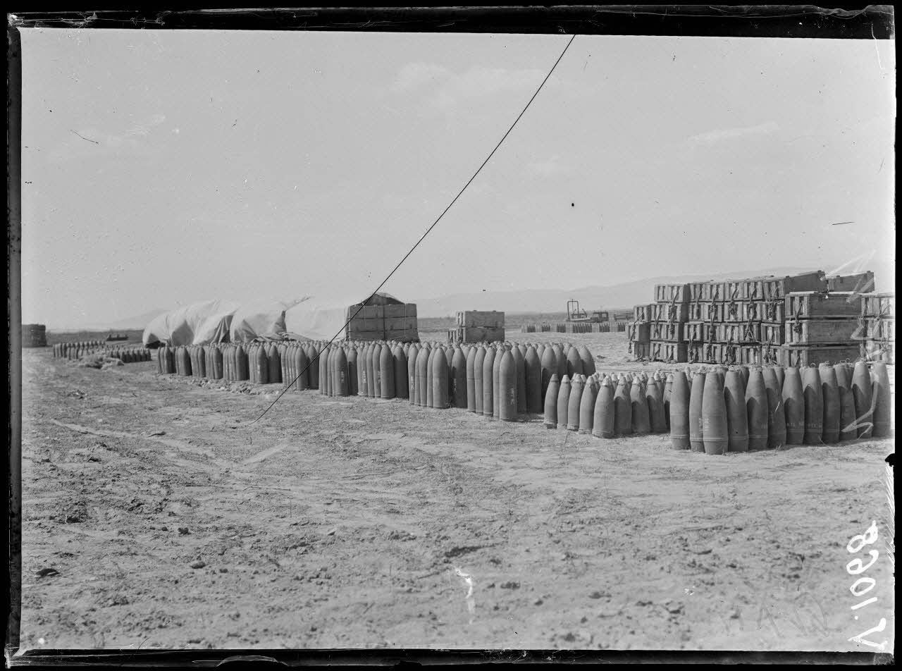 Route de Doiran. Parc d'obus près de la ligne du chemin de fer. [légende d'origine]