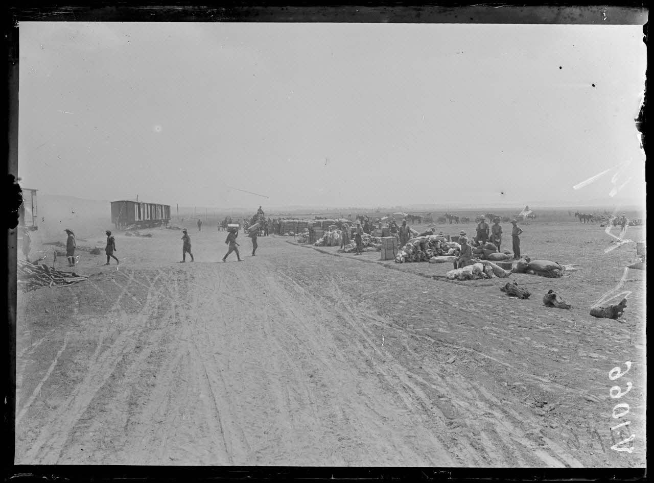 A la gare de Doiran où sont menés des Hindous (près de la côte 227, V 1066 à V 1076), une ambulance anglaise (Janes) circule au milieu des pièces d'artillerie détériorées et des abris.