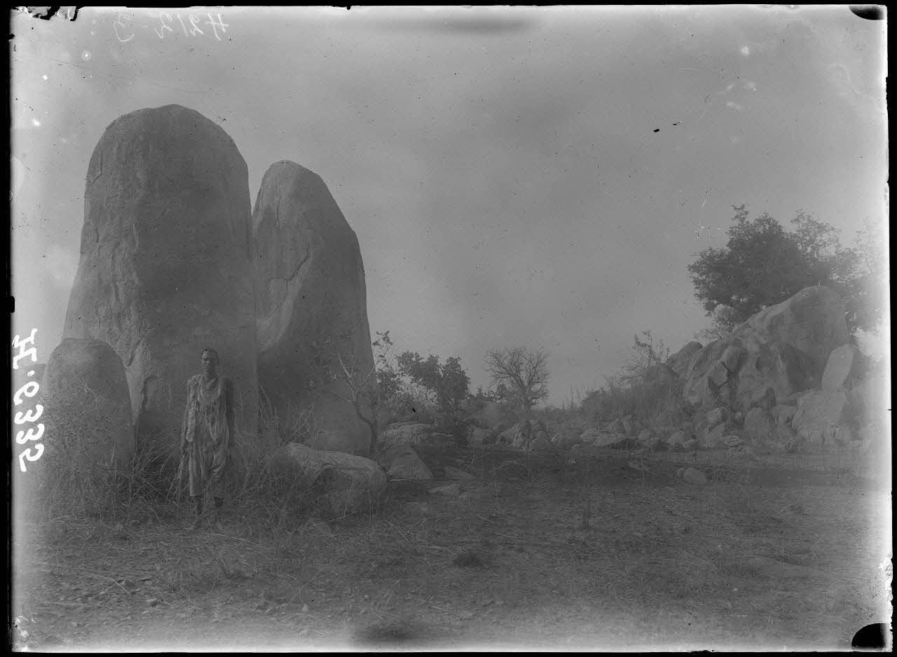 Route de Garoua à Maroua. Matafal. Aspect de la contrée, masses granitiques. [légende d'origine]