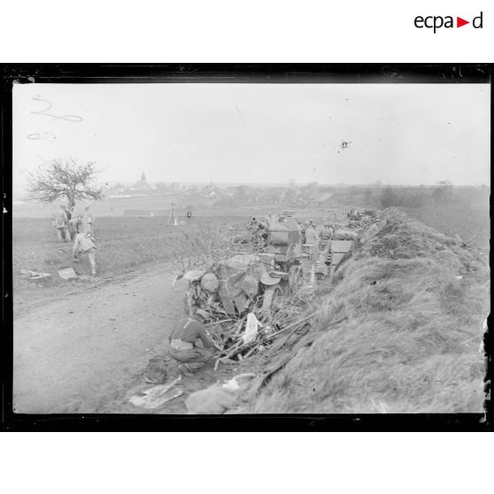 Route de Breteuil à Montdidier (Oise). Pièce de 75 camouflée.