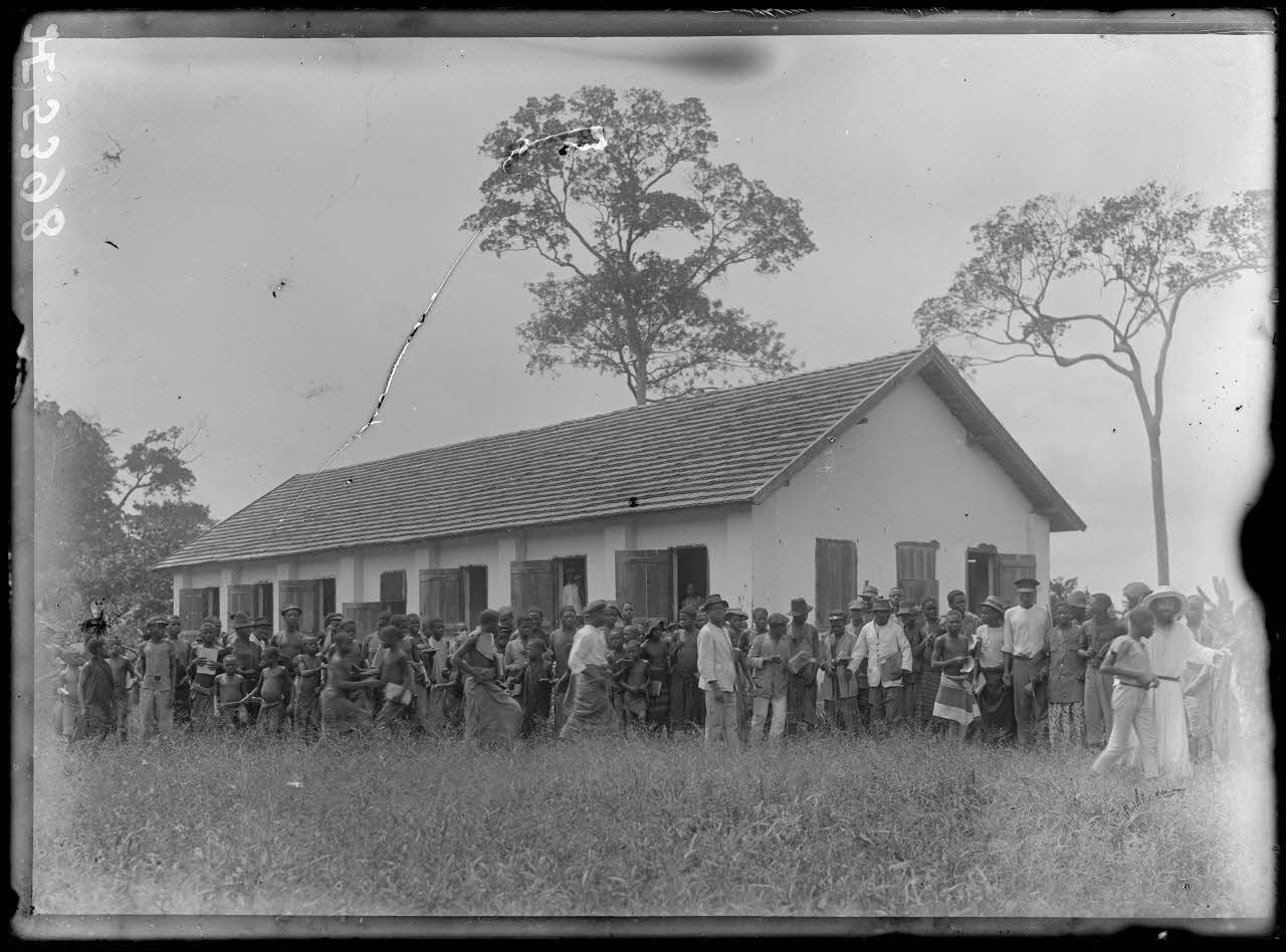 Route de Lolodorf à Kribi. Mission catholique de Ngovayang, sortie de classe. [légende d'origine]