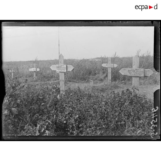Neuville-sur-Margival (Aisne). Tombes de Adrien Labadie, Jean-Joseph Botton, caporal et Morin (du 41e colonial).