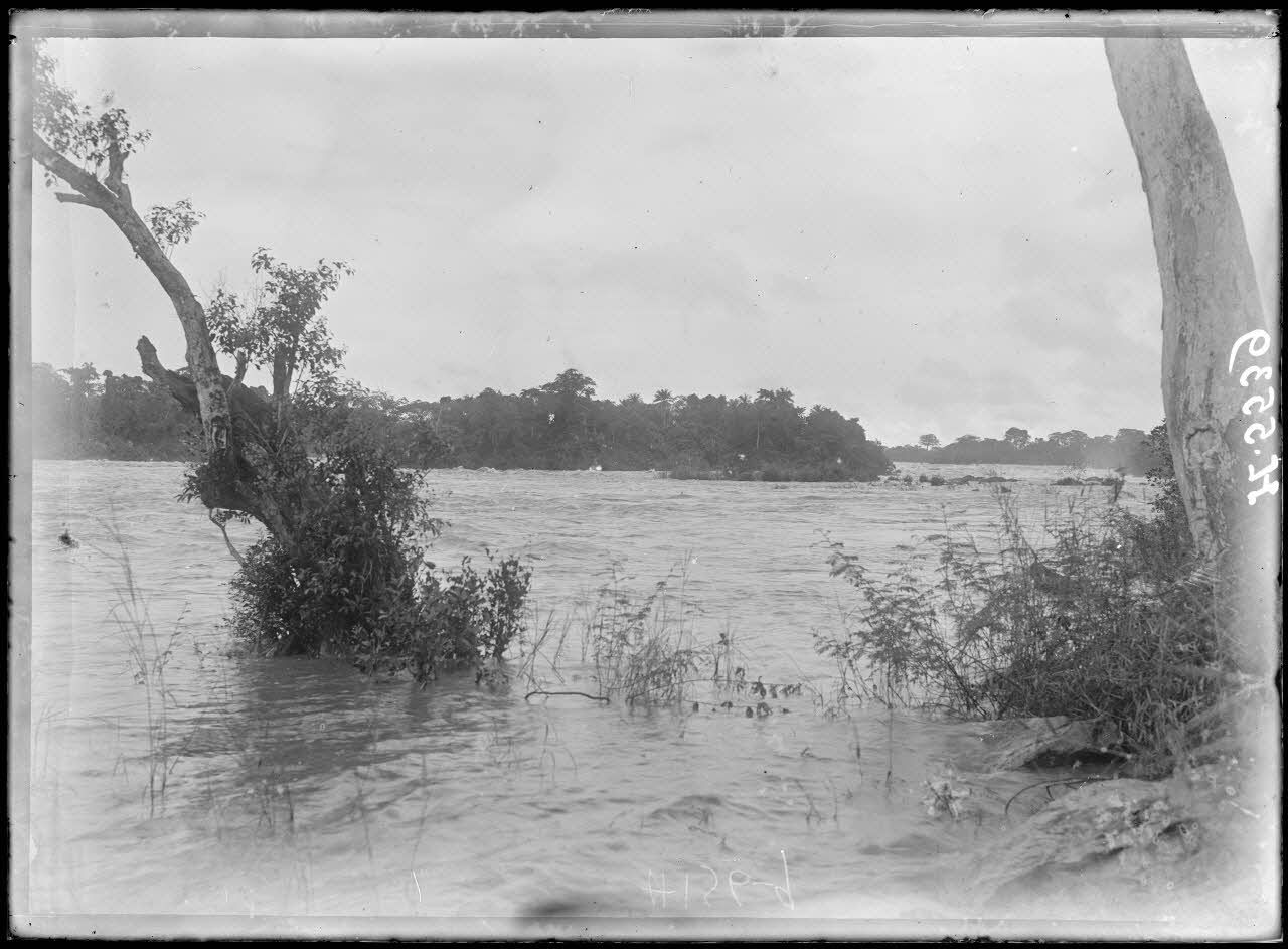 Route de Yaoundé à Yoko. Chutes de Nachtigal sur la Sanaga : chute droite. [légende d'origine]