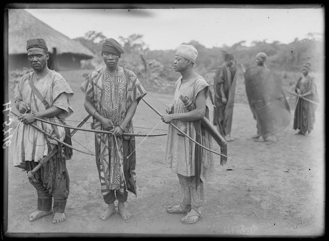 Route de Yaoundé à Yoko. N'ghila. Archers Babouté. [légende d'origine]