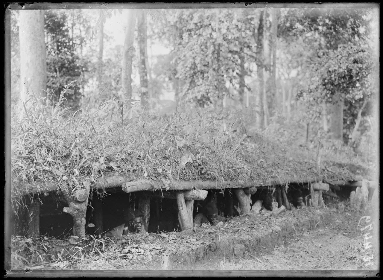- Un ouvrage fortifié, situé sur les bords de la rivière Kélé, est camouflé derrière des Kombo-Kombo.