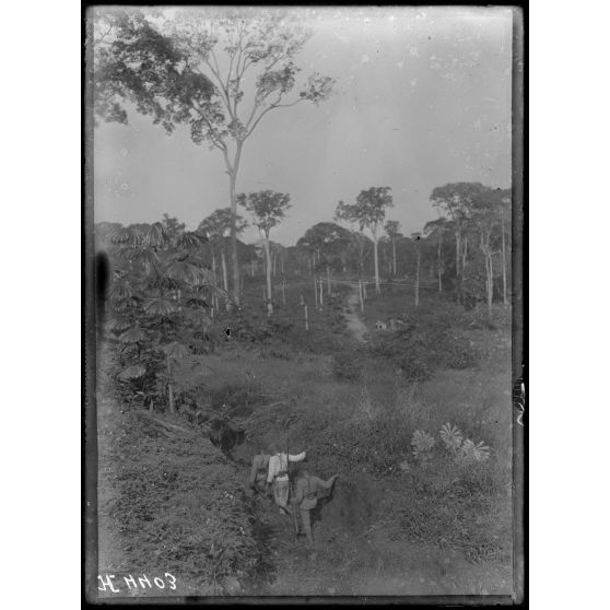 Route de Yaoundé, kilomètre 45, Lengoé. Tranchée allemande orientée S.E. [légende d'origine]