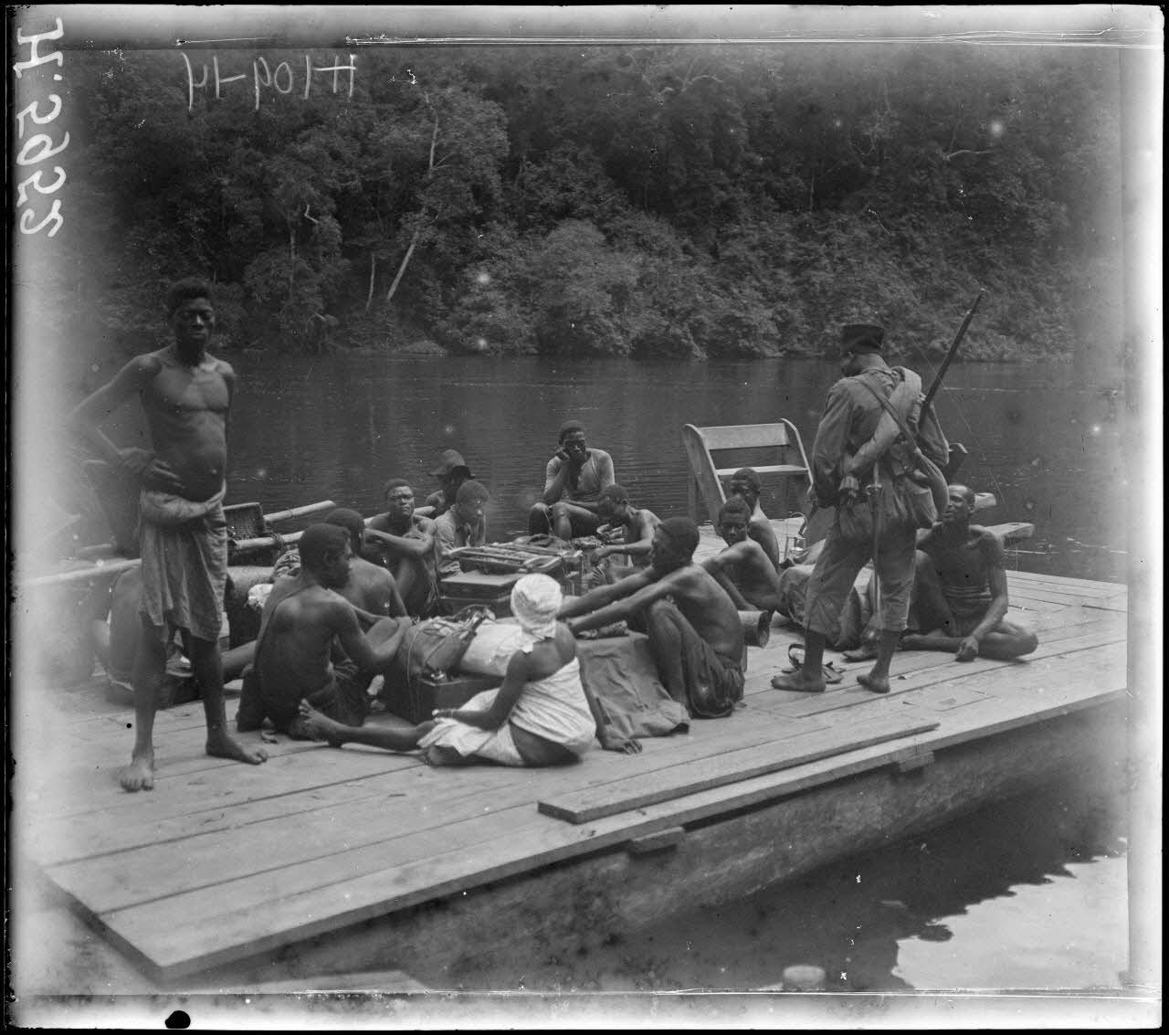 Après son voyage vers le nord, l'opérateur est redescendu à Douala et photographie le gouverneur embarquant sur le trois-mats "Vaucluse". Remontant le Wouri jusqu'à Yabassi, il prend des clichés des factoreries établies sur les rives du fleuve. Des indigènes vont au secours d'une chaloupe échouée sur un haut-fond, tandis qu'une chaloupe à vapeur remonte le fleuve (plaque manquante). A Nono, le transporteur "Sokoto" charge son bois.