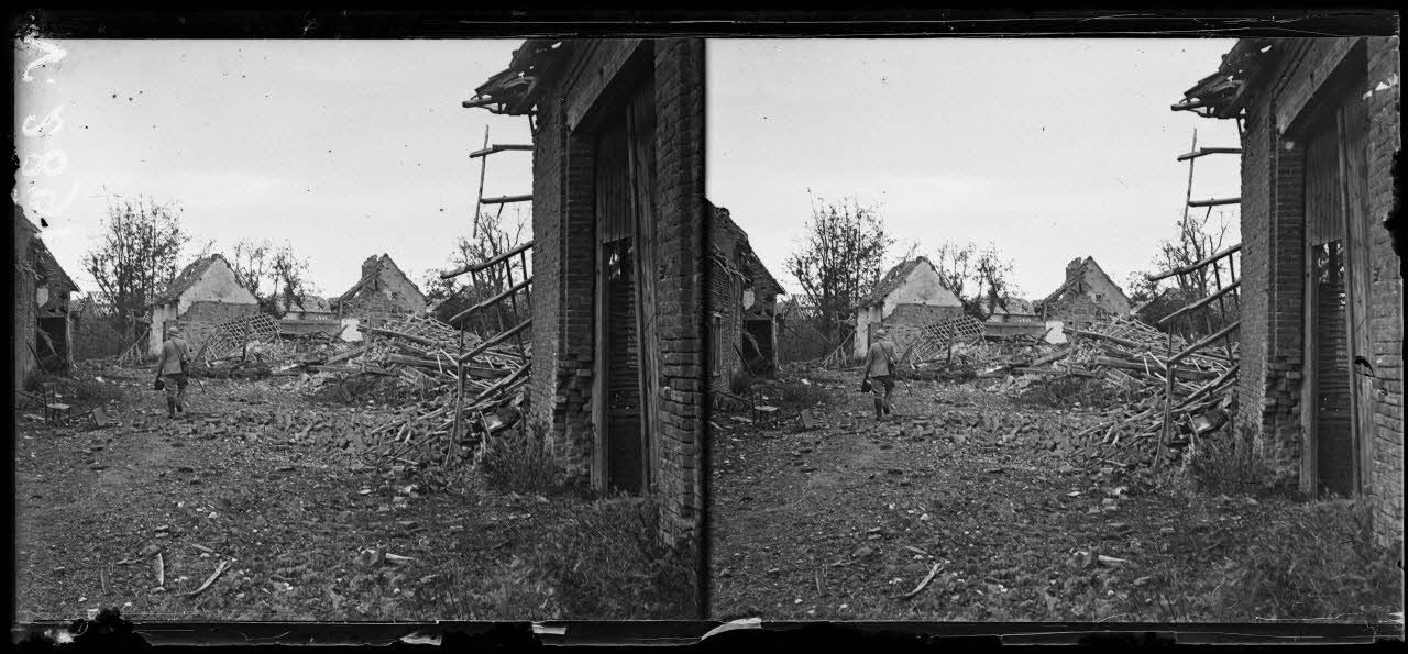 - Dans le village de Rouvrel (Somme, 13/07/1918, V 2891 à V 2895) la totalité des maisons et l'église sont en ruines.