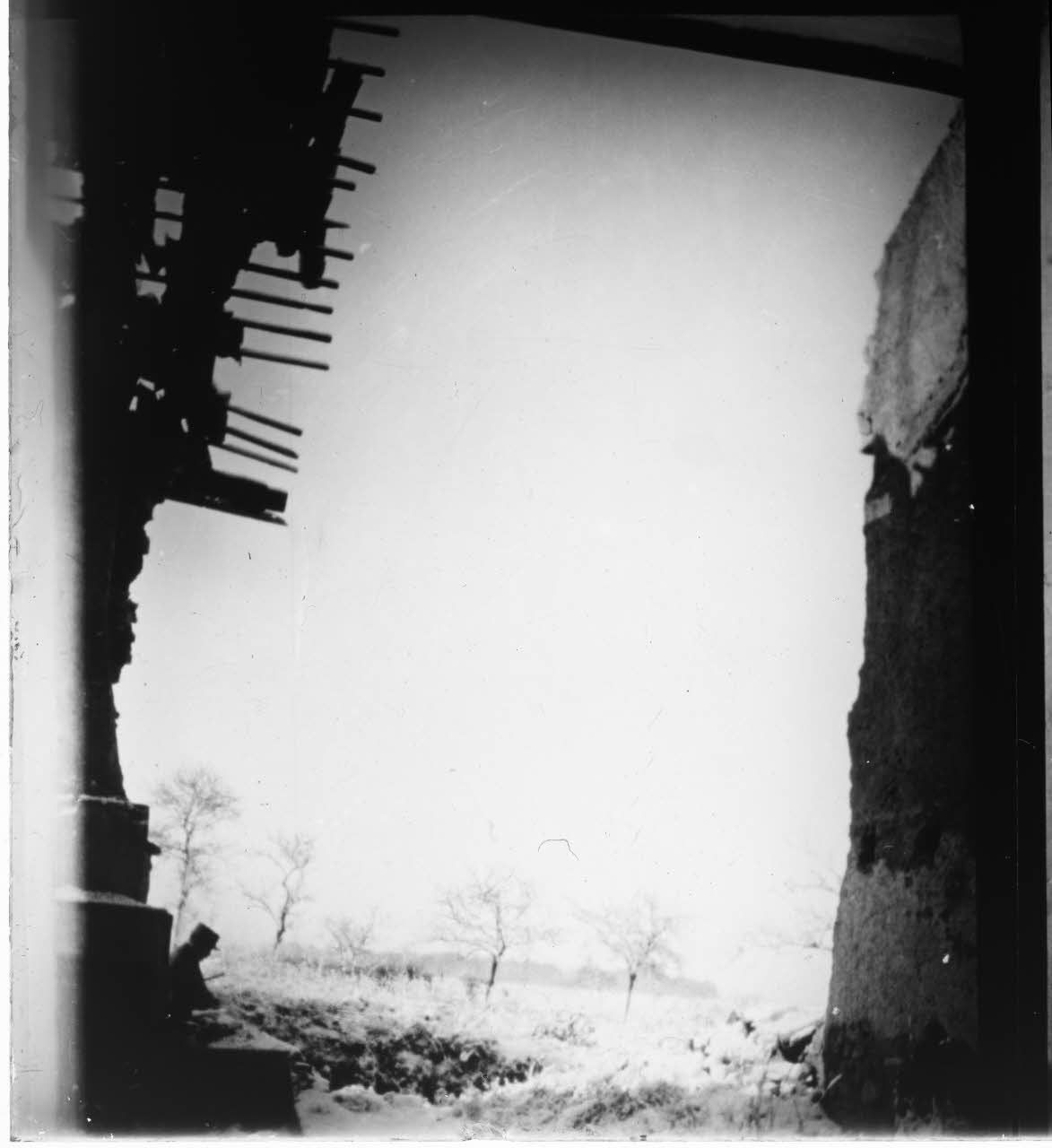 D169-2-17. [Quatre vues différentes sur une même plaque de verre du fort des Paroches, près de Saint-Mihiel dans la Meuse, et de ruines].