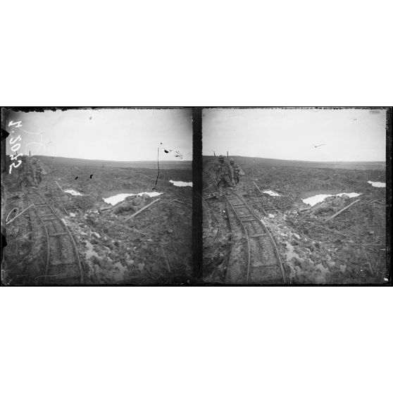 - sur la route entre Verdun et Douaumont : la gare de ravitaillement de Adelbert à 500 m du fort de Douaumont, le transport d'un blessé venant des premières lignes, un cantonnement dans le ravin des Vignes (SPA 42 L 2061/2062/2072), l'entrée des abris de l'ouvrage d'Adelbert (SPA 42 L2079), les défenses de barbelés du PC " MF4 " près de Fleury, le poste d'abri des 4 Cheminées, l'entrée de l'ouvrage de l'abri des 4 Cheminées, un blessé français ramené par des prisonniers allemands sur un wagonnet Decauville, un cadavre français (SPA 42 L 2071/2075),la bifurcation des pistes entre Douaumont et Adelbert (SPA 42 L 2080/2081) ;
