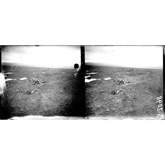 Ravin du Helly. Cadavres français et allemands dans les trous d'obus.