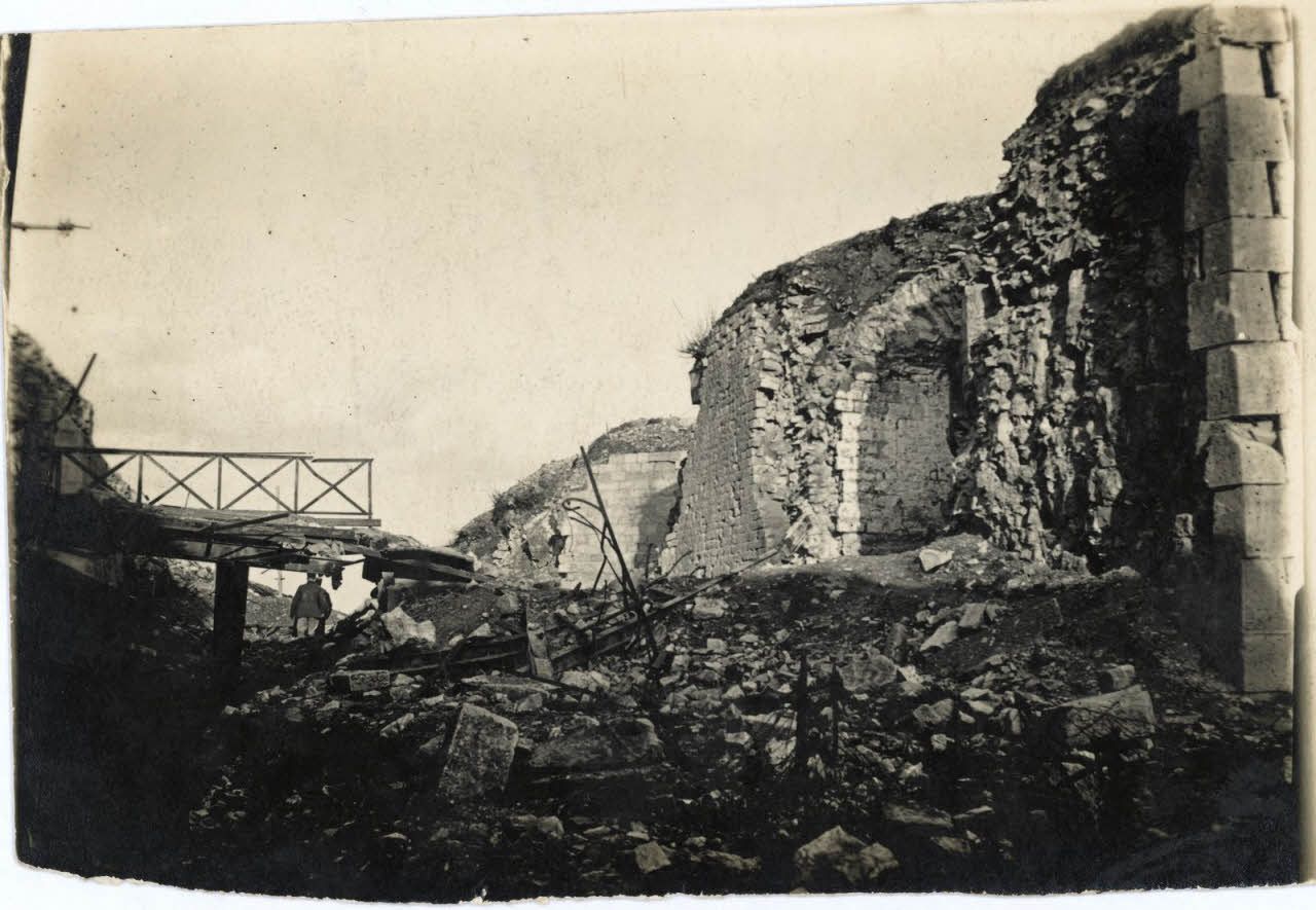 D169-2-17. [Quatre vues différentes sur une même plaque de verre du fort des Paroches, près de Saint-Mihiel dans la Meuse, et de ruines].