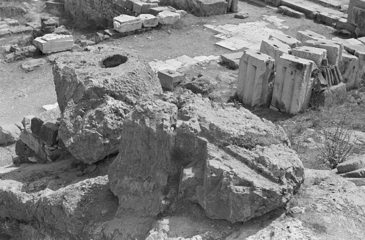 Les bases des colonnes de la salle du Télestérion, lieu de culte de Mystères d’Eleusis.