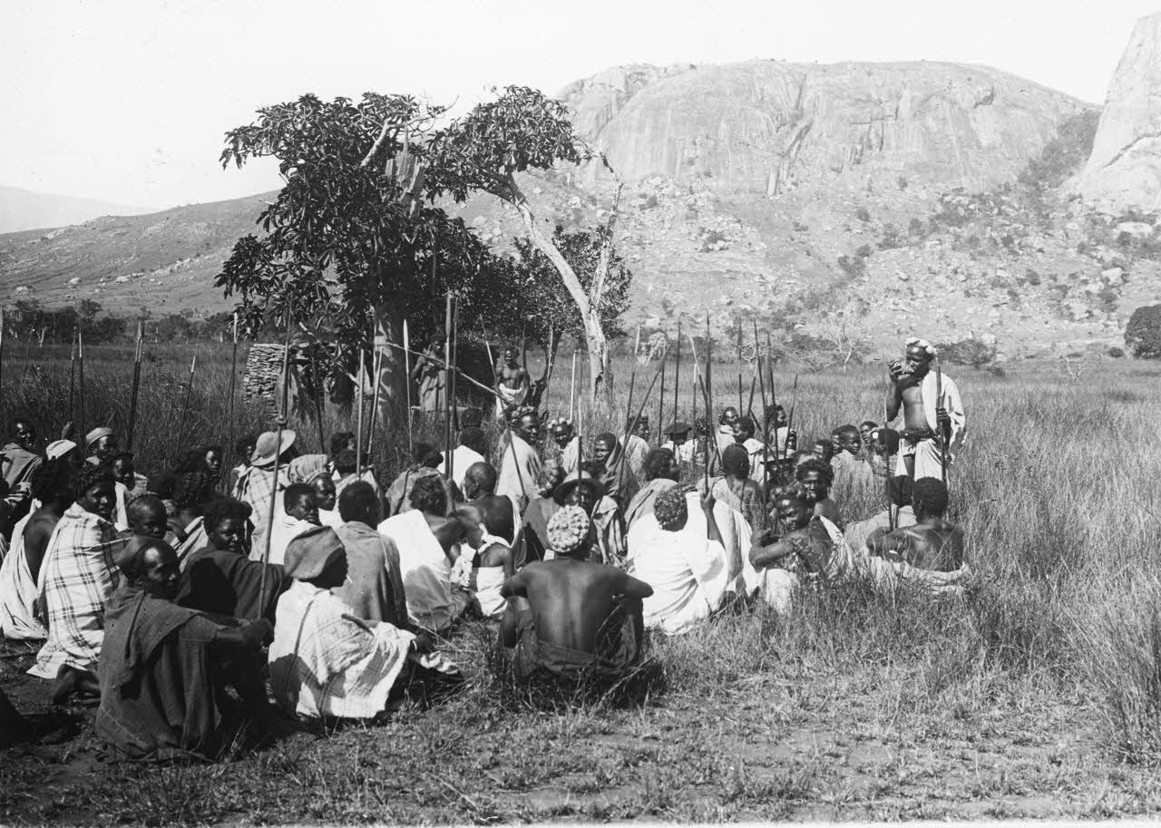Scène de prière avant le sacrifice aux mânes des ancêtres au pied du rocher des trois vierges.