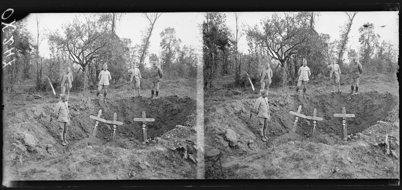 Saint-Aurin (Somme). Tombes françaises dans un trou d'obus. [légende d'origine]
