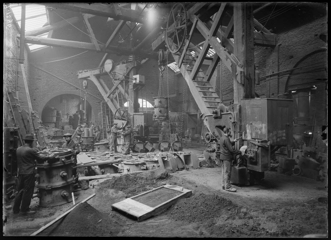 Saint-Chamond. Fonderie Wanney Michallet. Fabrication des obus de 220. Atelier de fonderie. [légende d’origine]