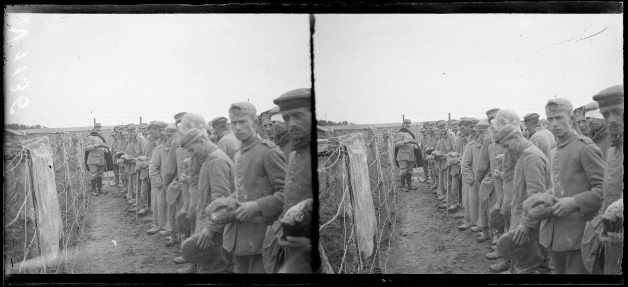 - A Saint-Hilaire-le-Grand, les prisonniers allemands pris lors de l'offensive des Monts de Champagne sont rassemblés dans un camp. Ils reçoivent une ration de pain.