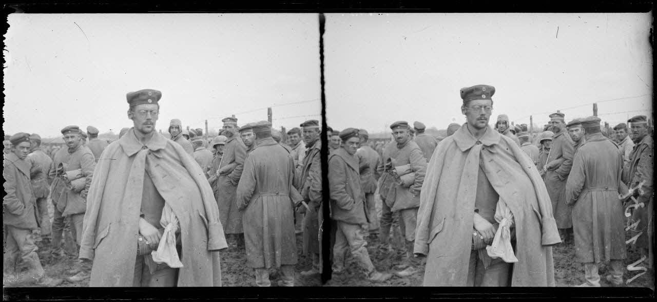 - A Saint-Hilaire-le-Grand, les prisonniers allemands pris lors de l'offensive des Monts de Champagne sont rassemblés dans un camp. Ils reçoivent une ration de pain.