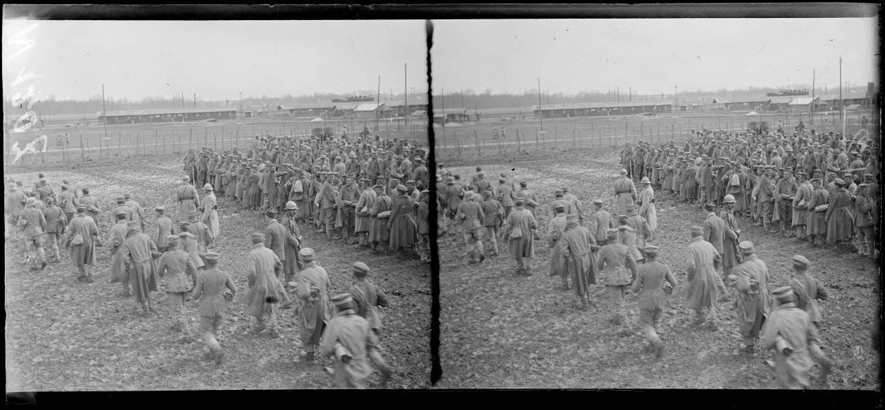 Saint-Hilaire-au-Temple (Marne). Les prisonniers dans leurs carrés distinctifs où ils sont séparés par régiments (19-4-17).