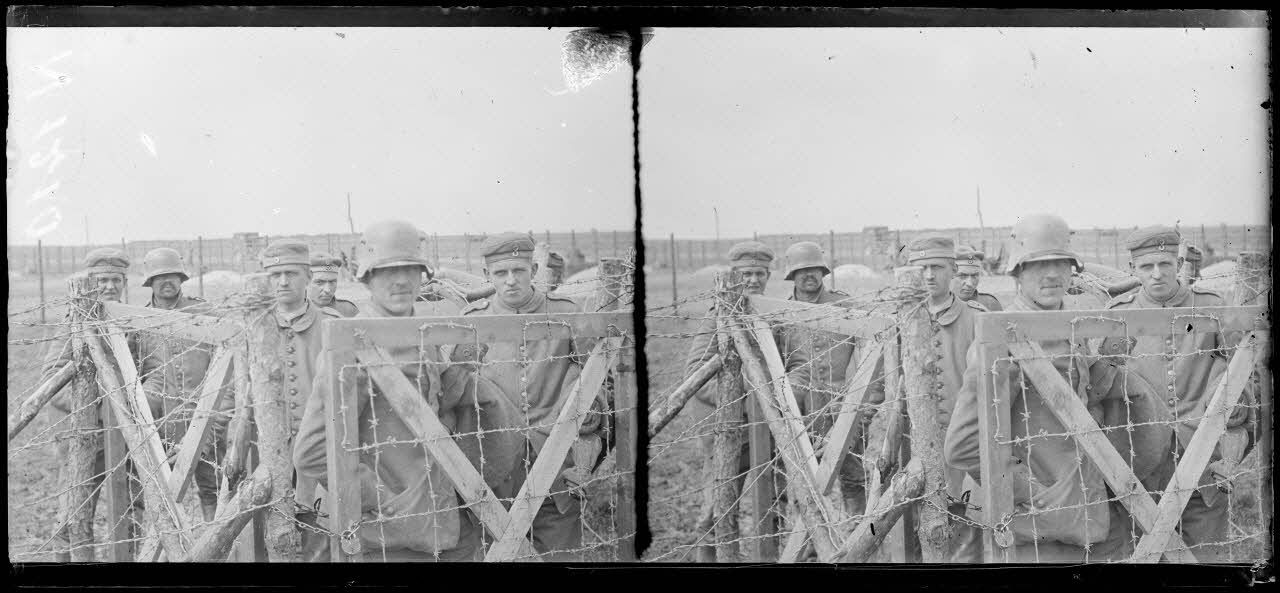 Saint-Hilaire-au-Temple (Marne). Les prisonniers dans leurs carrés distinctifs où ils sont séparés par régiments (19-4-17).