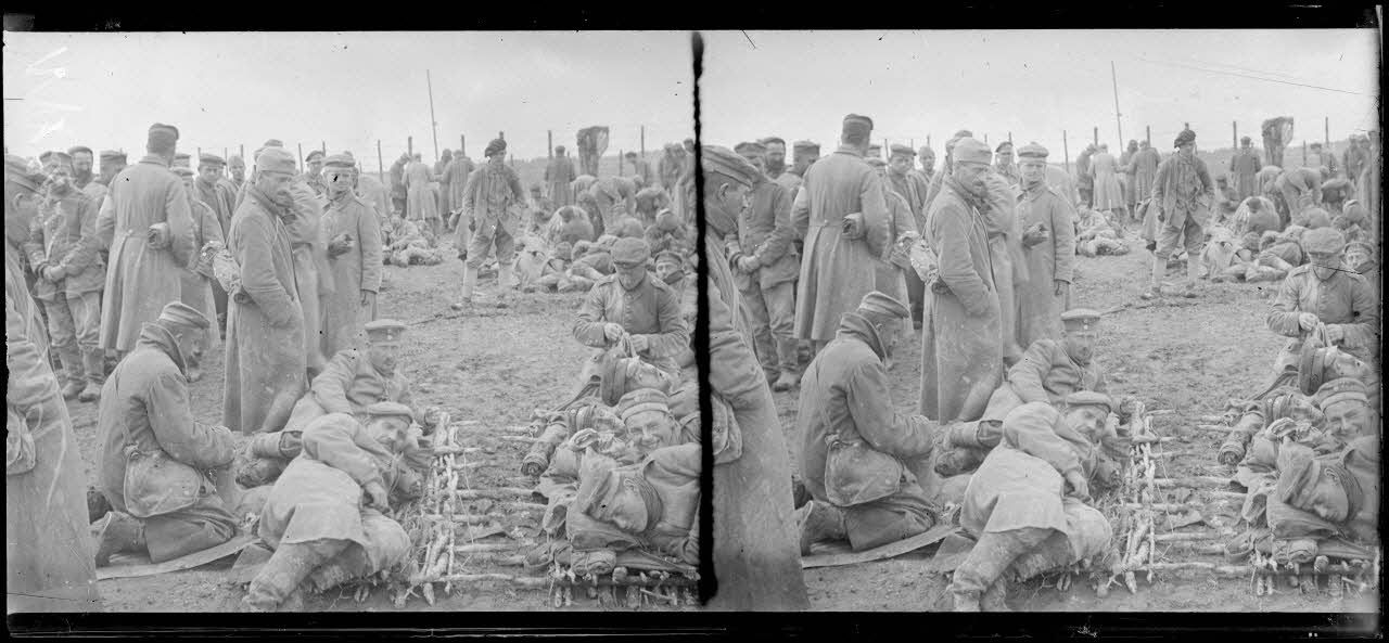 Saint-Hilaire-au-Temple (Marne). Les prisonniers dans leurs carrés distinctifs où ils sont séparés par régiments (19-4-17).