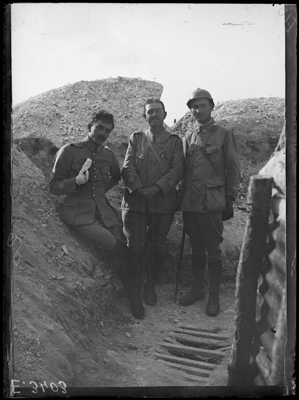 Saint Hilaire le Grand. Marne. Un commandant, un capitaine et un lieutenant polonais dans un boyau. [légende d'origine]