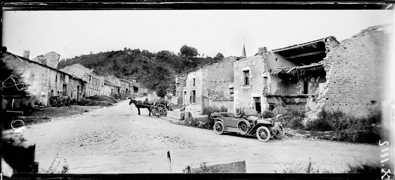 - les ruines, les destructions, les églises de nombreux villages : Limey, Mécrin, Saint-Julien-sous-les-Côtes, Girauvoisin, Bernécourt, Rambucourt, Mandres-aux-Quatre-Tours, Beaumont, Mamey, Broussey-en-Woëvre ;