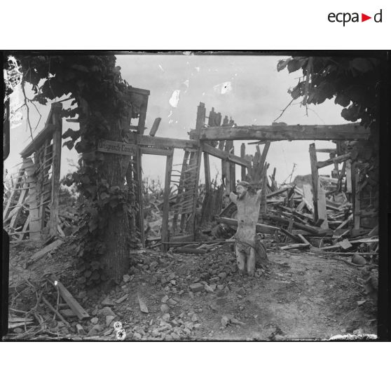 Conchy-les-Pots, habitations détruites à un carrefour.