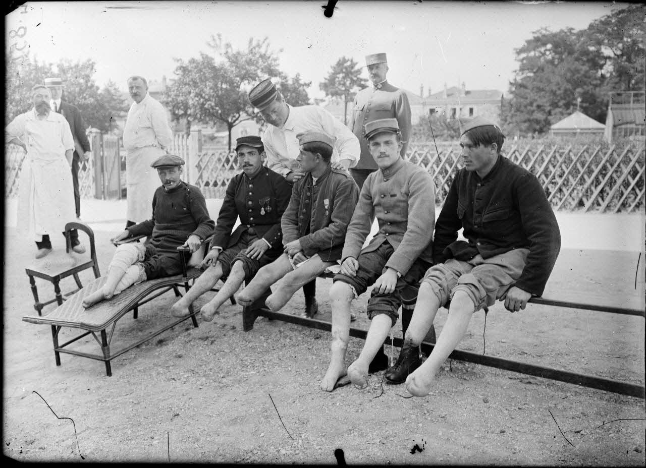 Saint-Maurice. Hôpital militaire 5 bis. Un groupe d'amputés des jambes.