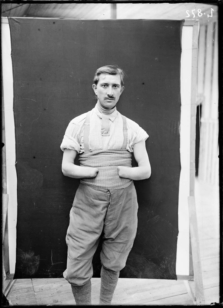 Saint-Maurice (Seine). Hôpital militaire n°5 bis. Soldat Robin muni de bras artificiels.