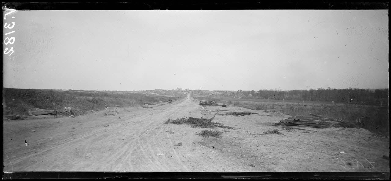 - Dans la ville de Saint-Quentin (Aisne, du 2 au 5 octobre 1918, V3163 à V 3202), les églises Saint-Martin et Sainte-Catherine, l'hôtel de ville, le théâtre, les halles et le palais de justice, ont été dévastés par les bombardements. Place Henri IV et rue de Paris, les maisons en ruines dominent le paysage, au même titre que les infrastructures industrielles (37 rue des Patriotes, la société de textile "Léon" et l'usine Beaurain du 23 boulevard Victor Hugo).
