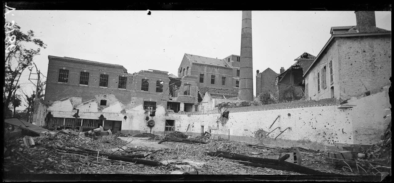 - Dans la ville de Saint-Quentin (Aisne, du 2 au 5 octobre 1918, V3163 à V 3202), les églises Saint-Martin et Sainte-Catherine, l'hôtel de ville, le théâtre, les halles et le palais de justice, ont été dévastés par les bombardements. Place Henri IV et rue de Paris, les maisons en ruines dominent le paysage, au même titre que les infrastructures industrielles (37 rue des Patriotes, la société de textile "Léon" et l'usine Beaurain du 23 boulevard Victor Hugo).